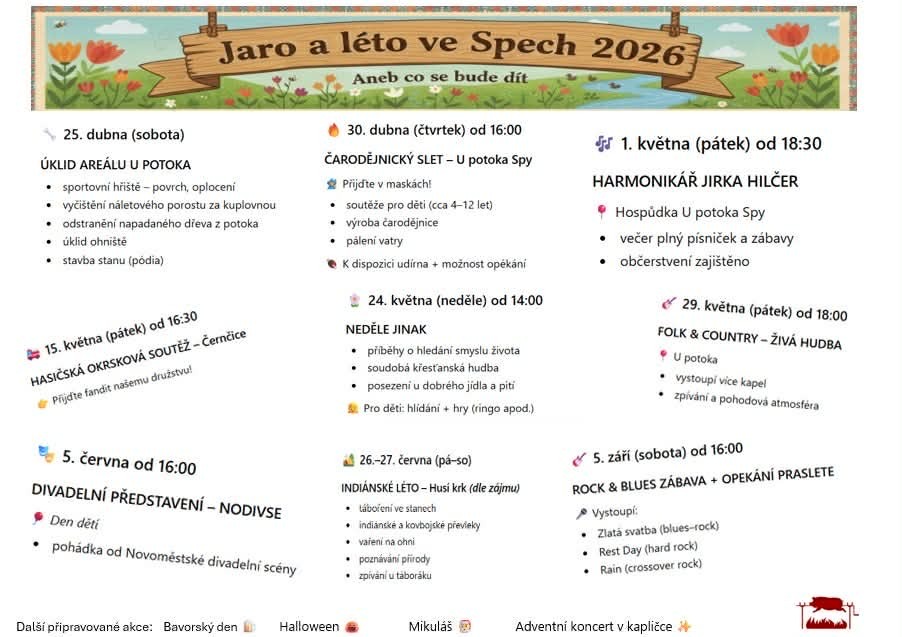 Jarní a letní akce ve Spech 2026